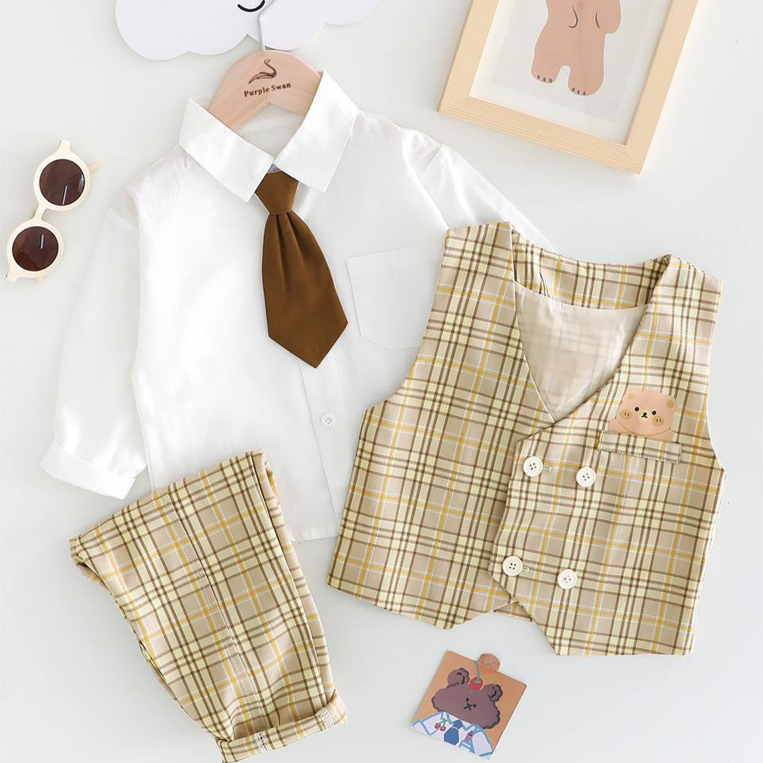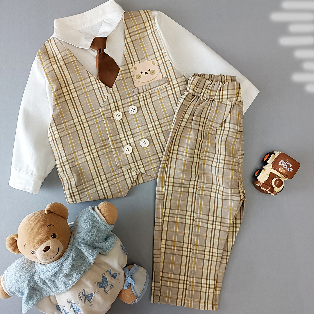 ست 4 تکه لباس پسرانه مدل چهارخونه