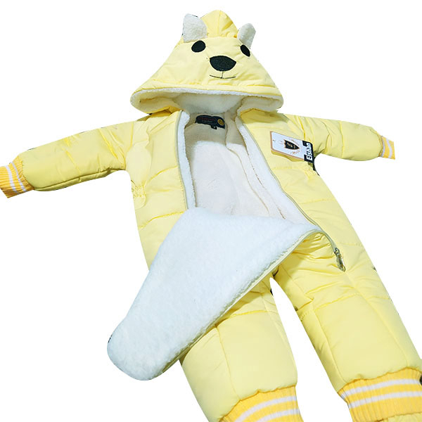 - جزئیاتجنس شمعی داخل خز و پولیش دو زیپ یکسره برای سهولت در استفاده دارای پاپوش متصل و کلاه گرم راحت و سبک مناسب دختر و پسر سرآستین و دمپا کشباف